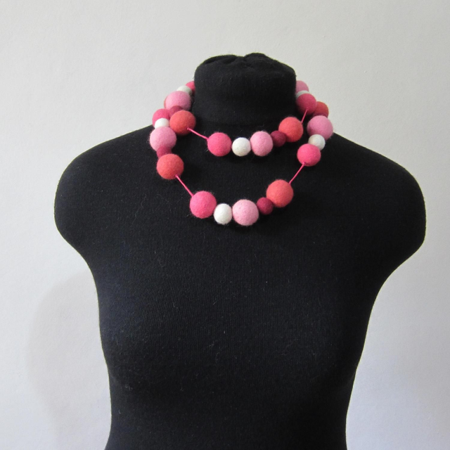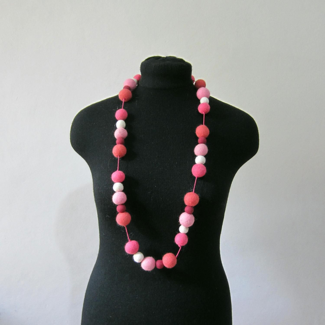 Collana lunga leggera realizzata con materiali naturali. Queste perle sono fatte a mano di lana merino fine. Collana raccolta su un laccio di cotone. - Lunghezza collana: 101 Centimetri; - Materiali: Lana, Cotone; - Stile della catena: In grani; - Stile: Boho e hippy; - Articolo fatto a mano.