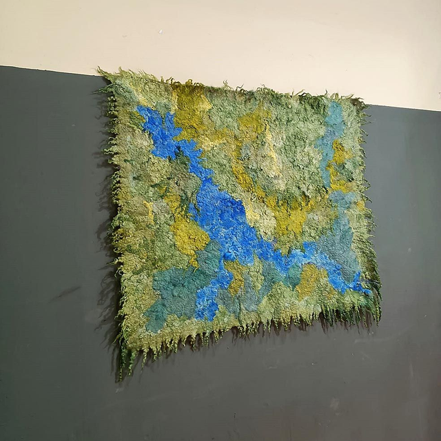 Il pannello artistico "Spring Forest" è realizzato in lana e pelo di diverse razze ovine su un supporto in cotone (nessun animale è stato maltrattato). Il pannello ha proprietà fonoassorbenti. Infeltrito, fatto a mano. Il pannello è venduto senza cornice, solo su tela. Dimensioni: 136 x 108 cm.