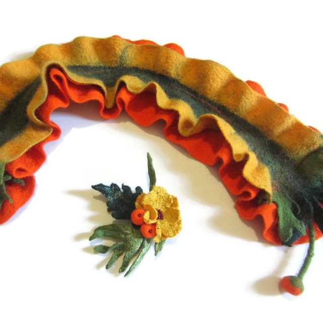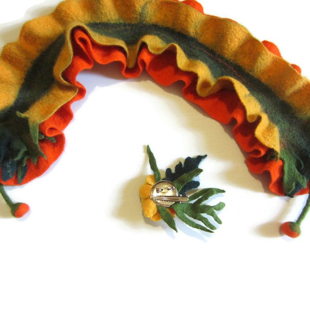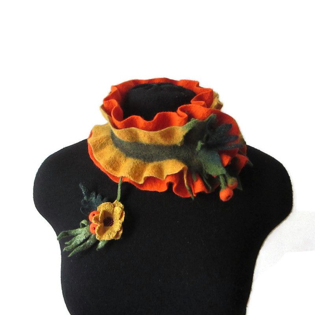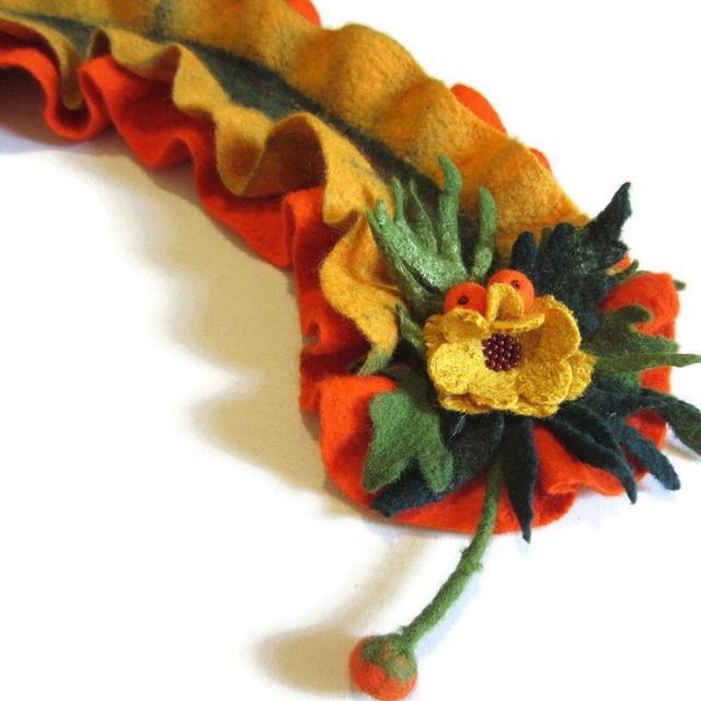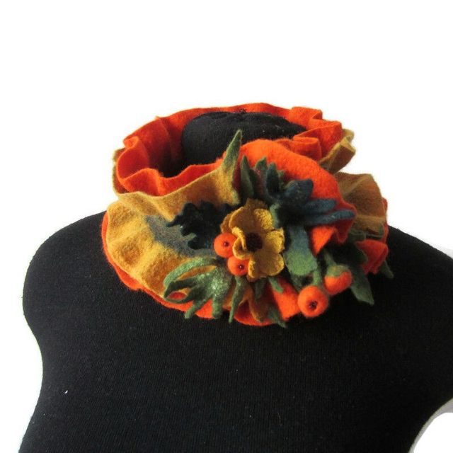 Sciarpa collo feltro lana merino infeltrita Sciarpa fatta a mano Sciarpa orange Regali unici per lei Sciarpa donna fiore sciarpa
