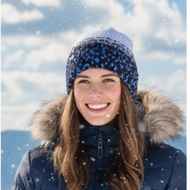 Un cappello di lana morbida decorato con paillettes, lavorato a mano. Il cappello si adatta alla misura della testa 56-60 cm.