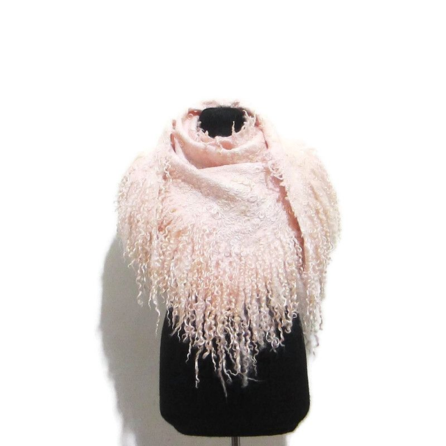 Scialle Lana seta feltro caldo rosa perla infeltrimento inverno Fatto a mano Scialle donna Regalo unico